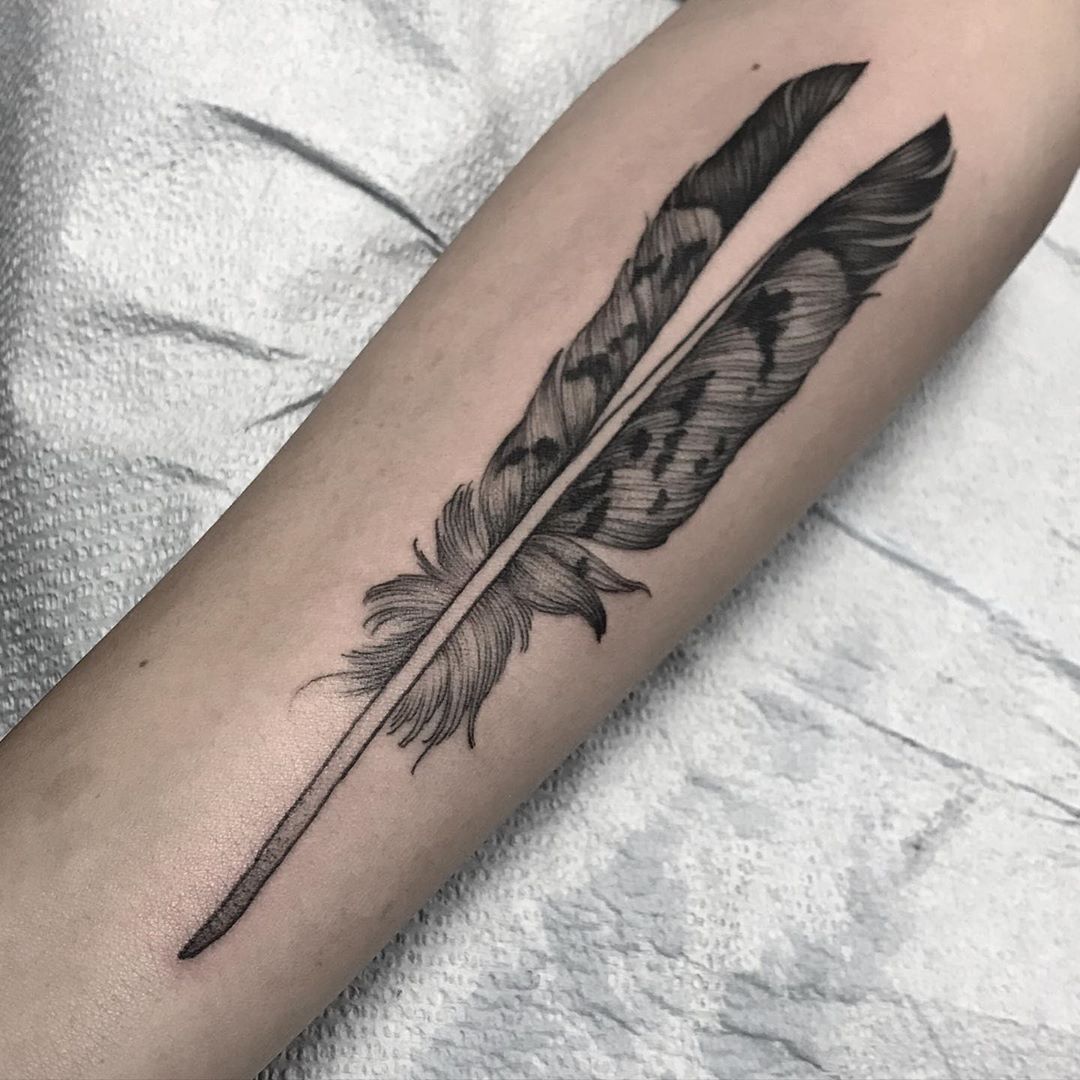 La pluma es parte de distintos rituales, por lo que los tatuajes de plumas pueden adoptar el significado de distintas características como la voluntad o la fuerza, sin importar el tamaño o los colores de ella.