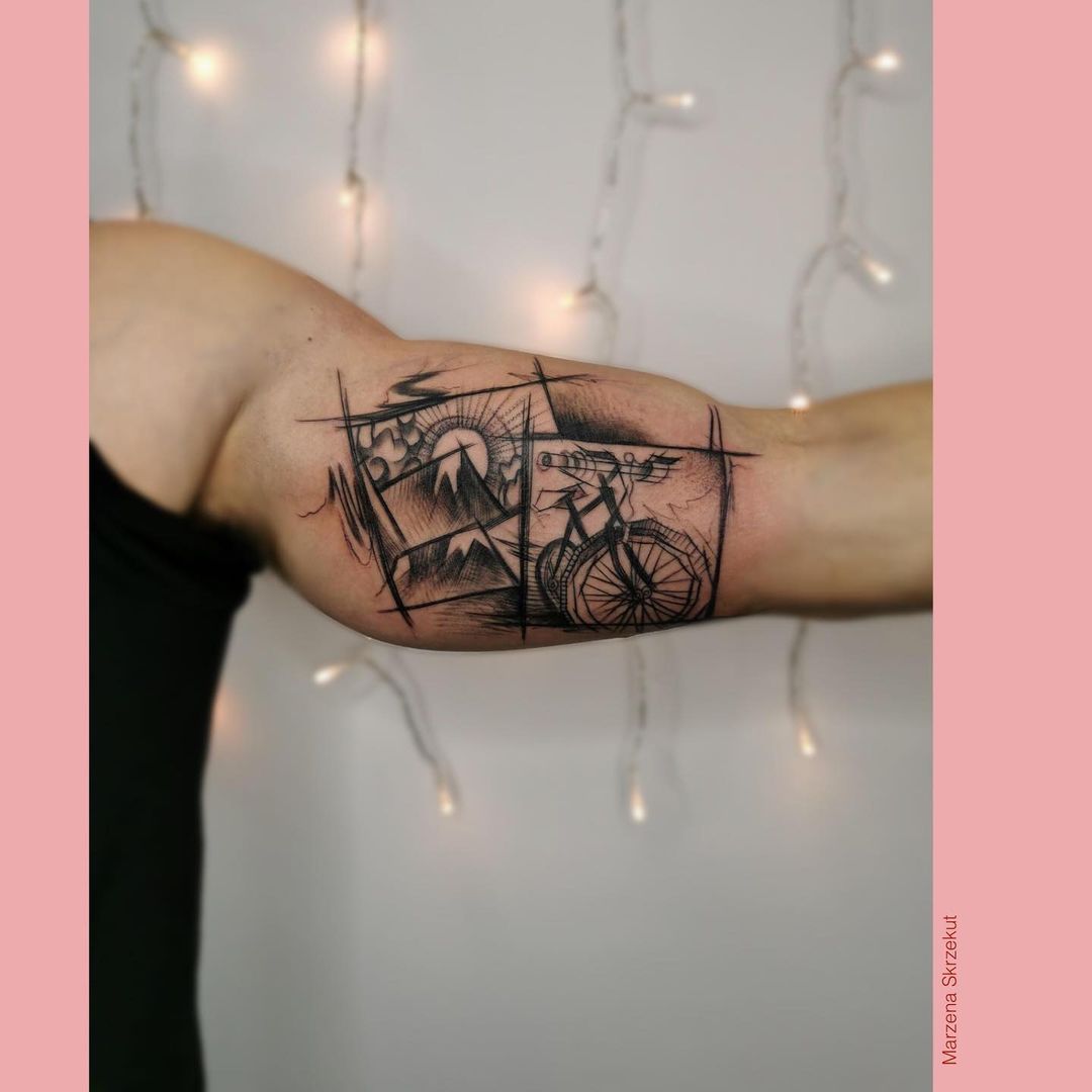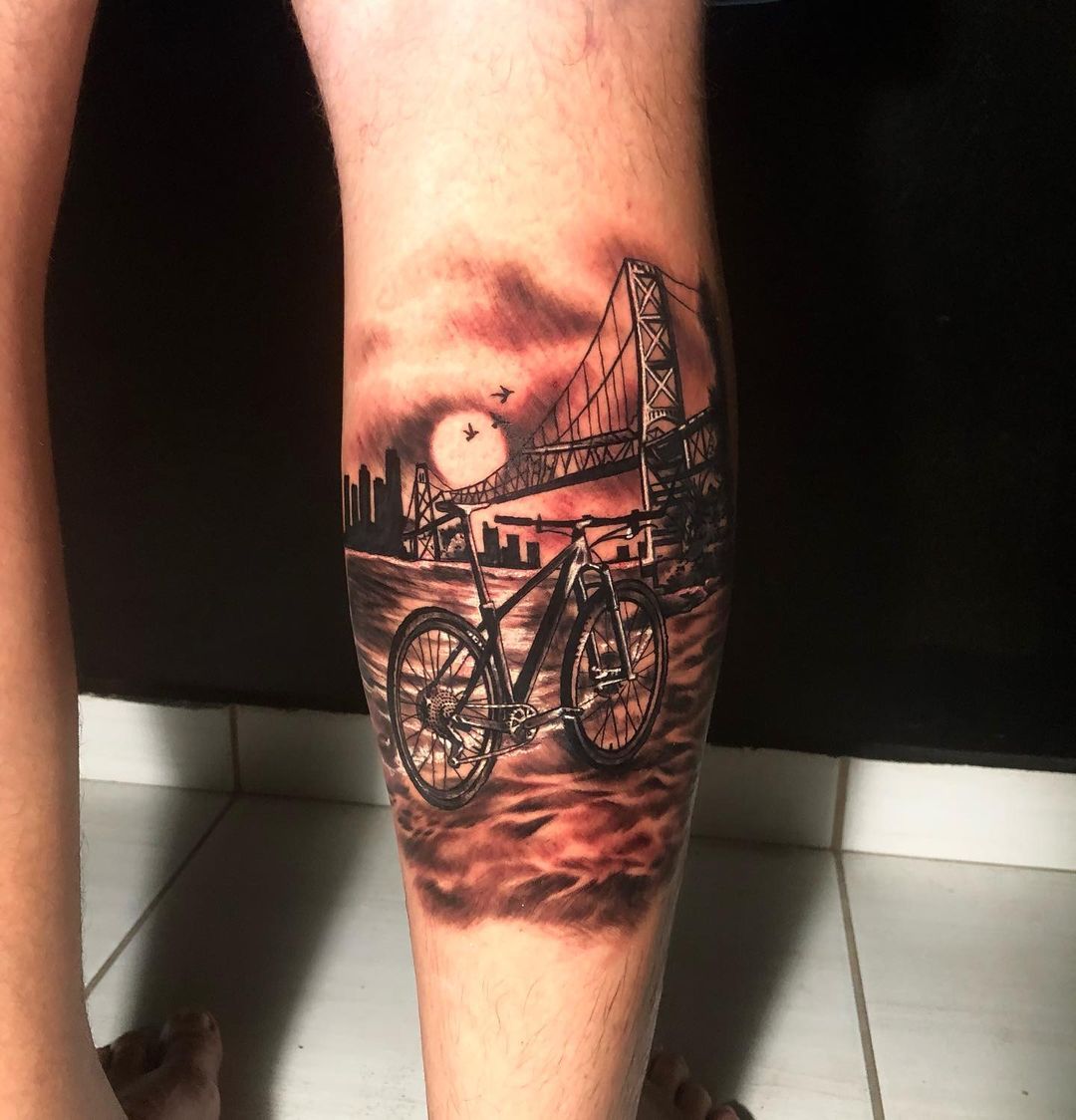 Otro diseño muy representativo es la bicicleta en un espacio determinado para simbolizar un viaje y su destino. Los tatuajes de ciclismo son realmente muy llamativos y originales y también se pueden hacerse en 3D para hacerlo más real, como si este transporte tuviera vida propia en el cuerpo y pudiera moverse. Siempre puedes agregar un color o una fecha.