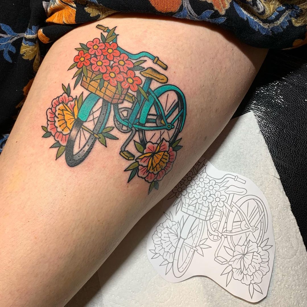 Por lo general, lo más destacado es la propia bicicleta para resaltar, o la bicicleta con la silueta de la persona para representar la experiencia y el recuerdo de un viaje. Los tatuajes más detallados son generalmente más grandes, por lo que se hacen en áreas más grandes para resaltar los detalles más significativos.