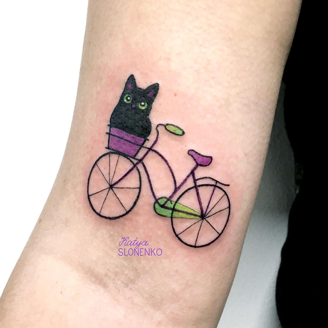 Un tatuaje de bici en tu muñeca puede ser pequeño, ¡pero se verá genial! la muñeca es una buena idea ya que son tatuajes muy visibles. ¿Quieres un tatuaje con efecto de movimiento? podemos jugar con los colores para darle un toque de movimiento eligiendo tus colores favoritos. Un tatuaje de bicicleta en tu brazo te encantará.