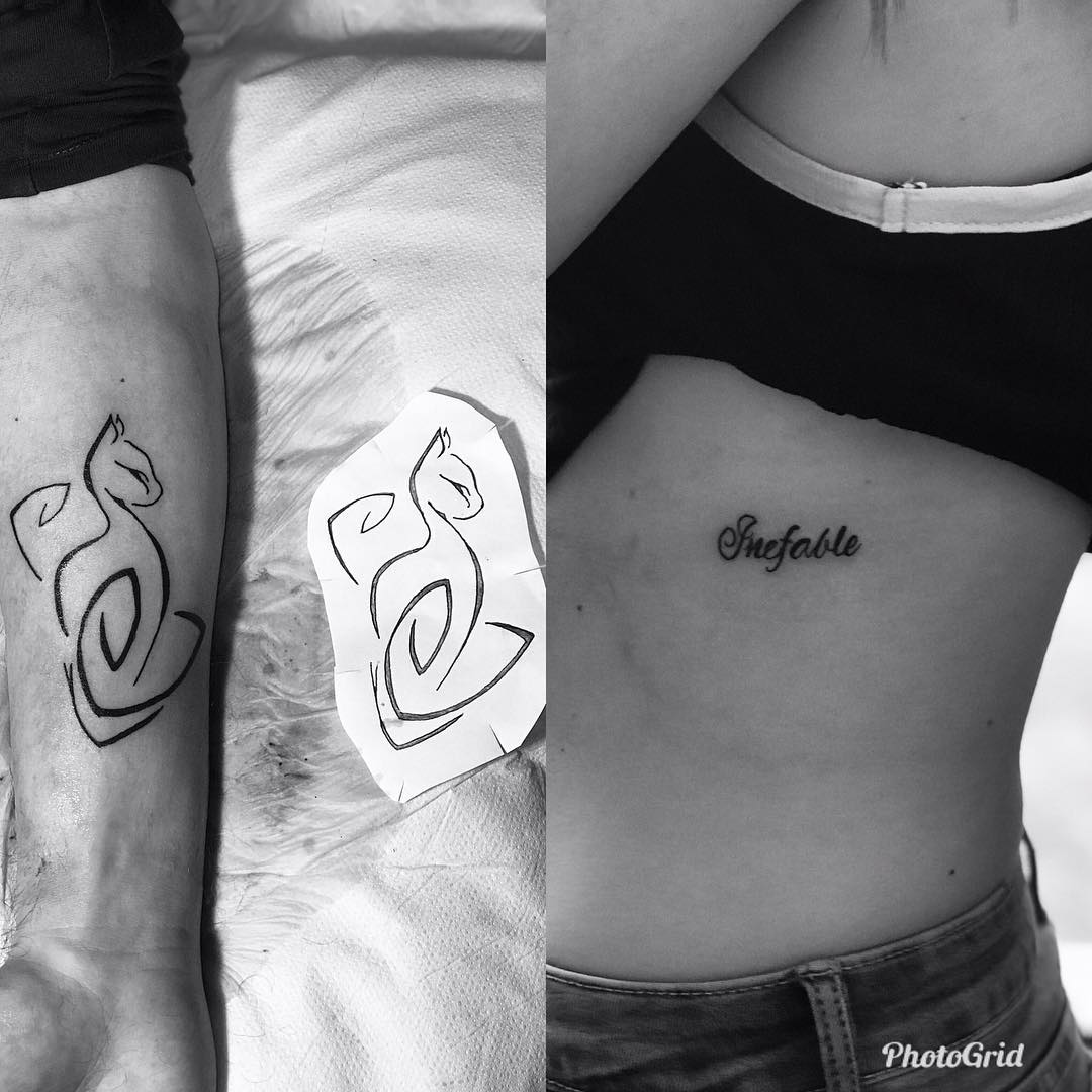 La elección de los tatuajes de gatos que muestran las siluetas de los gatos de forma discreta y sobria. El trazo suele ser negro y sencillo. Pocas líneas pero de gran efecto el resultado.