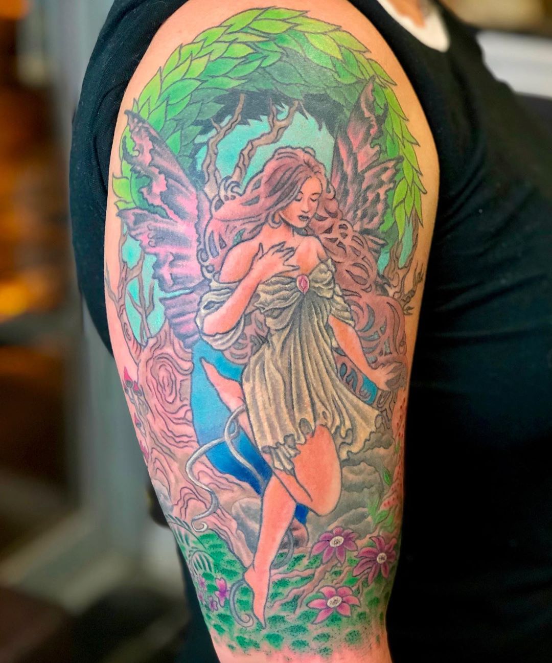 Cuando observes tatuajes de hadas, sentada en flores u hongos, esto está relacionado con la persona y su deseo de libertad. También reflejan emociones de tristeza y dificultades que fueron superadas. Siendo elegidas muchas veces por las mujeres, como recordatorio de la fuerza y capacidad para superar las adversidades.