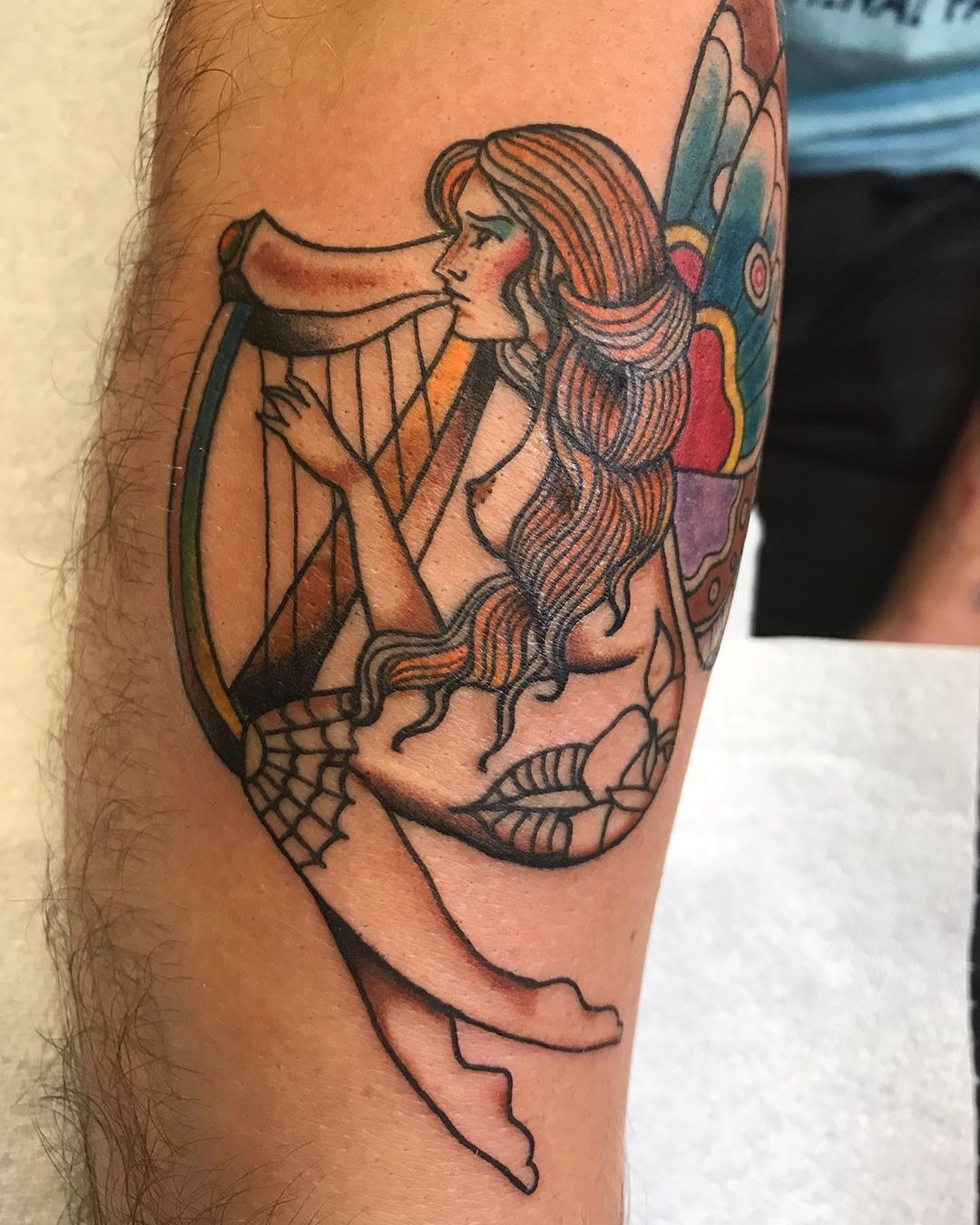 - Los tatuajes con hadas, que tienen posiciones sensuales, representan el poder de la feminidad. Si se le incorpora aspectos como las flores, frutas, entre otras, está sugiriendo inocencia con tentación. Estos tatoo, son los más coloridos, aunque en ocasiones, se ven en blanco y negro.