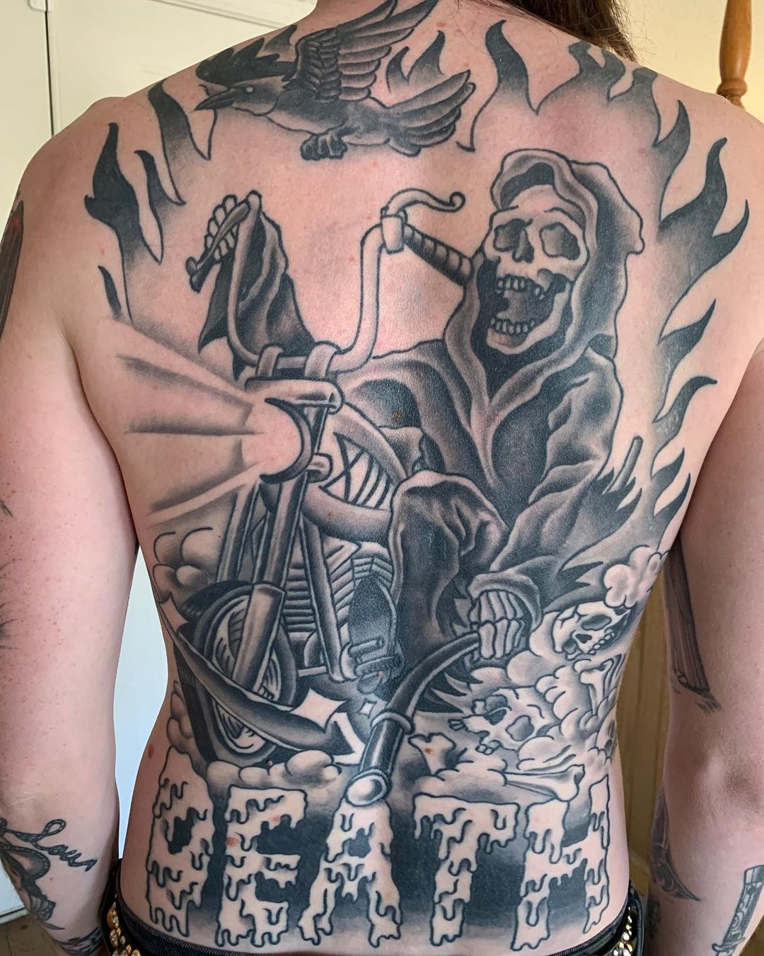 - “Vive para rodar, rueda para vivir” Esta frase popular entre los moteros transmite la idea de que la vida en moto es algo esencial y vital. El tatuaje puede incluir un diseño tipográfico creativo o combinar la frase con elementos relacionados con las motocicletas.