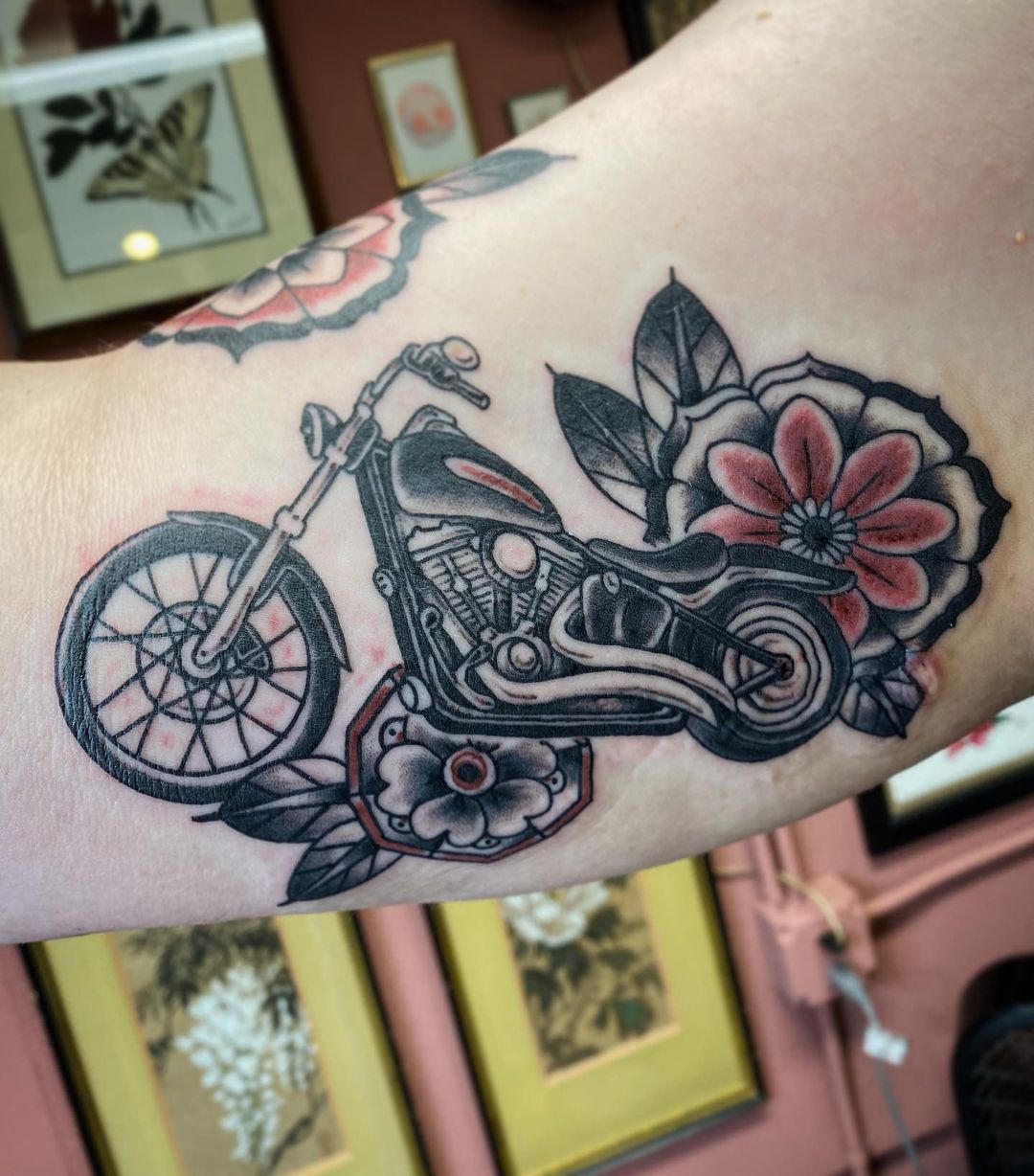 También es posible fusionar elementos de ambos estilos en un solo tatuaje, creando una obra de arte única que refleje la evolución de las motocicletas a lo largo del tiempo. Por ejemplo, se podría representar una moto clásica junto a una moderna, destacando las diferencias y similitudes entre ambas. También se podría incluir algún elemento que represente el paso del tiempo, como un reloj o una carretera sin fin.