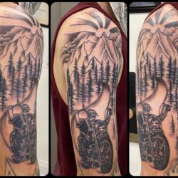 - Bosques y selvas: Un tatuaje que represente un bosque o una selva puede evocar la conexión de los motociclistas con la naturaleza y su capacidad para adaptarse a diferentes entornos. Este tipo de diseño puede incluir detalles como árboles frondosos, senderos estrechos y sinuosos, y animales que habitan estos ecosistemas.