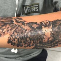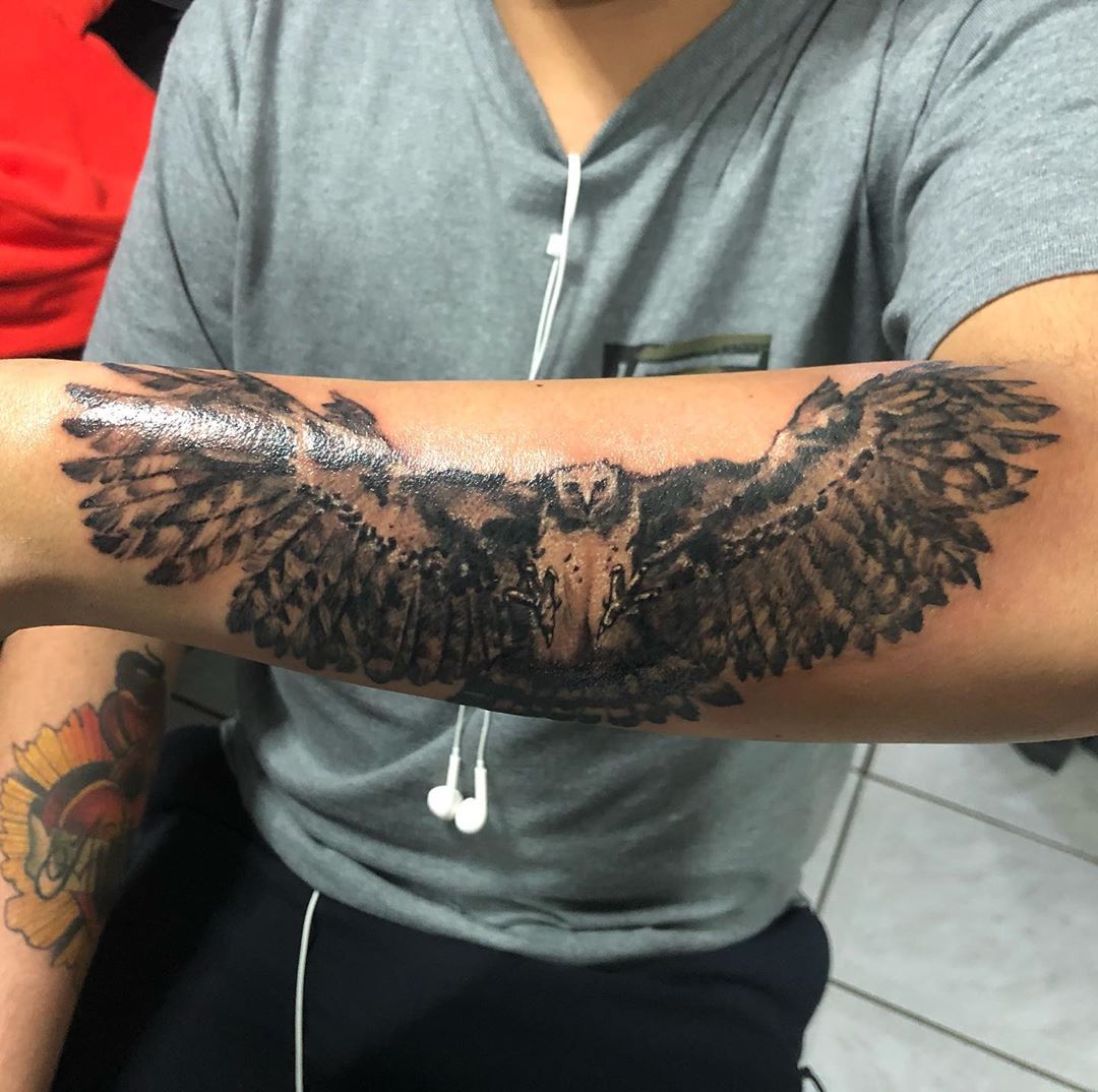 - El enigmático búho o lechuza, es un ave muy buscada por los amantes de la magia, misterio y buena suerte, por ser un ave nocturna. Para muchos representa la inteligencia y sabiduría, suelen ser realizados con tinta negra y en algunas ocasiones de algunos colores. Se usan mucho en las piernas, espalda y brazos.