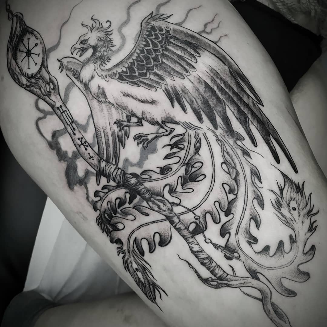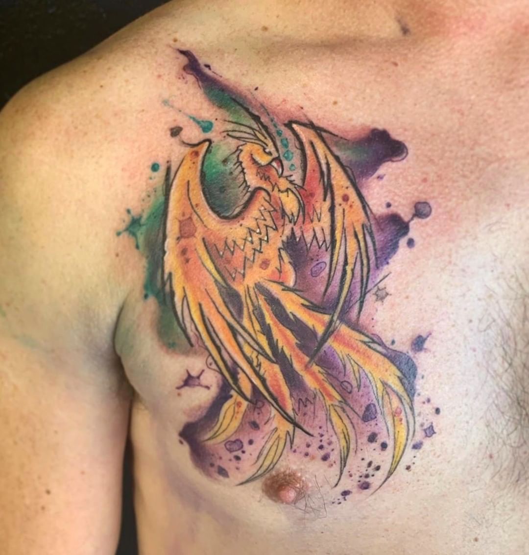 - El ave fénix, es el diseño más popular para los amantes de las aves, por representar el surgimiento de las cenizas. Su simbolismo está basado en la rebeldía, seguir adelante a pesar de los tropiezos, la lucha contra la adversidad. Muchos la asocian también con la esperanza, sus diseños suelen ser muy impresionantes y abarca bastante espacio, sobre todo en la espalda.