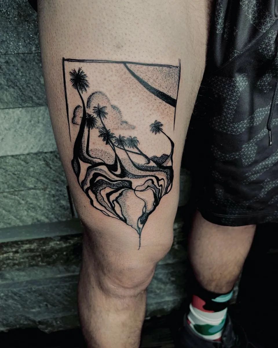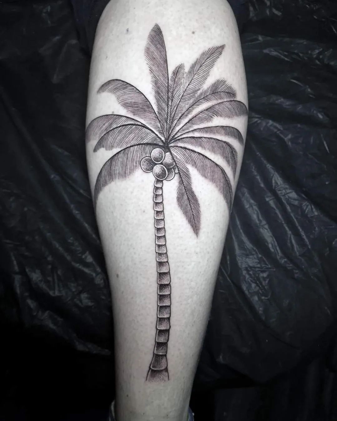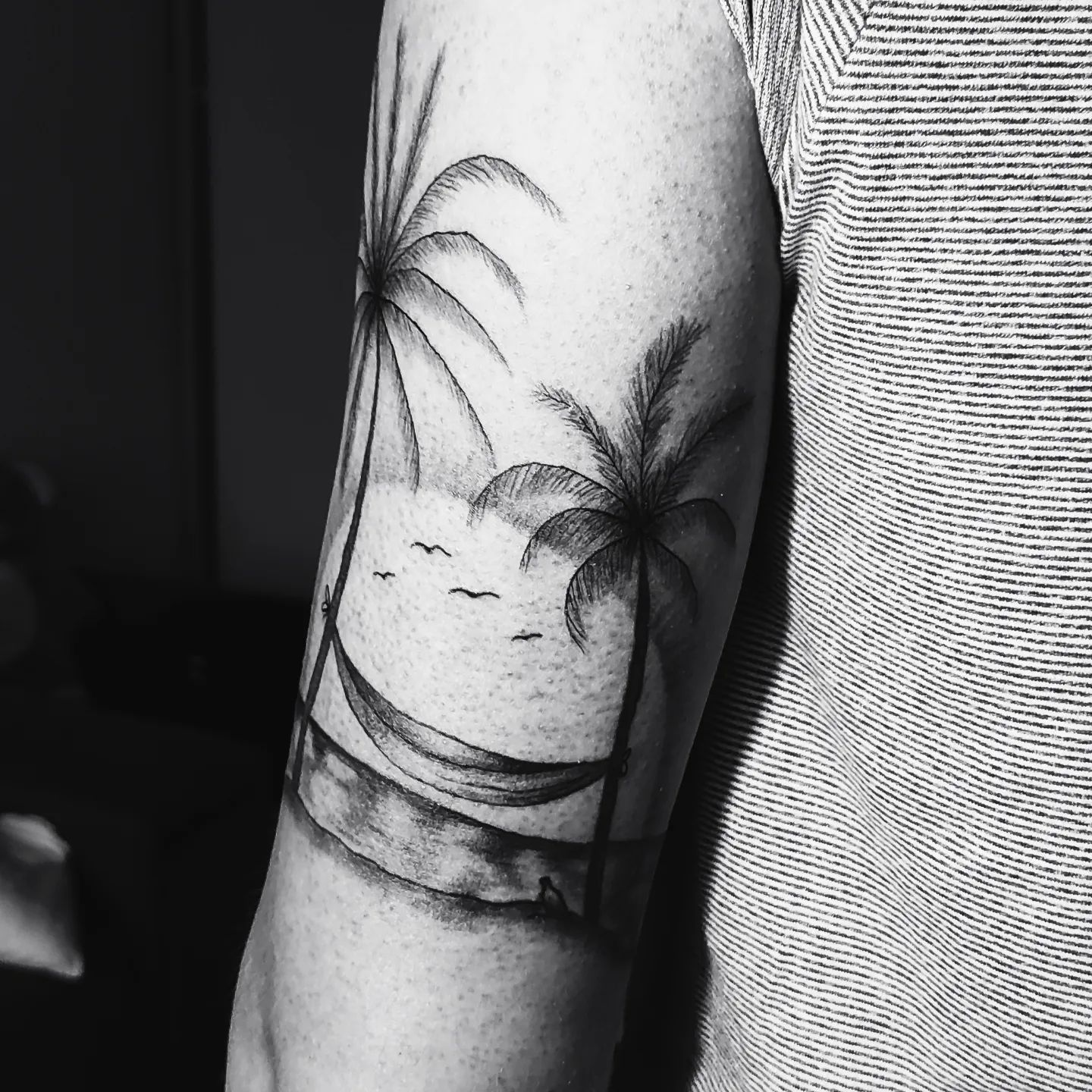 - Paradise and relaxation: Palm trees evoke images of tropical beaches, sun, and sea, making these tattoos a great way to remember unforgettable vacations or convey a message of relaxation and enjoyment.